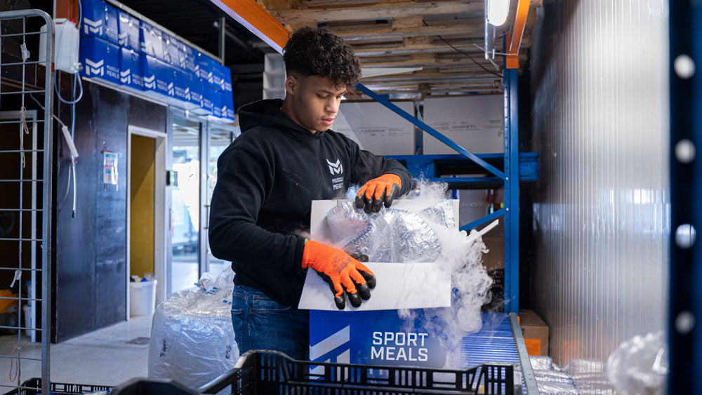 In onze grote vriesruimte worden jouw maaltijden uit de juiste locaties gehaald en gescand met een orderhandscanner. Zo weten we zeker dat elke bestelling 100% klopt — geen missende maaltijden, geen fouten in porties, geen gedoe.